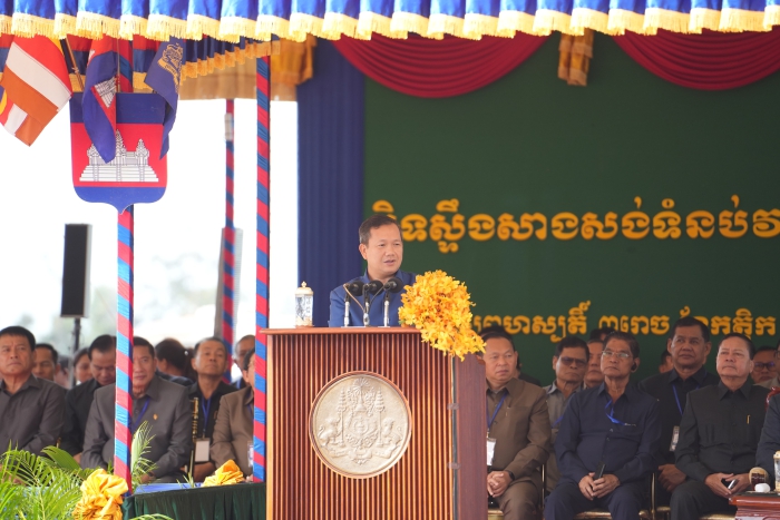 柬埔寨首相洪瑪奈向集團下屬企業(yè)國機重型裝備集團股份有限公司董事長韓曉軍交付截流石。柬埔寨能源與礦產(chǎn)部部長高拉達那、柬埔寨國公省省長密杜娜·布通、中國駐柬埔寨大使王文天、中國駐柬使館經(jīng)商處參贊鐘潔等中柬政要,中柬主流媒體與社會各界人士等1800余人,共同見證這一中柬務(wù)實合作、增進民生福祉項目建設(shè)取得突破性進展的歷史時刻。